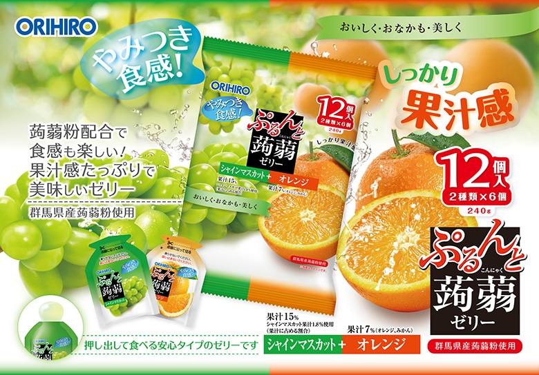 商品名 : ぷるんと蒟蒻ゼリーパウチ シャインマスカット+オレンジ